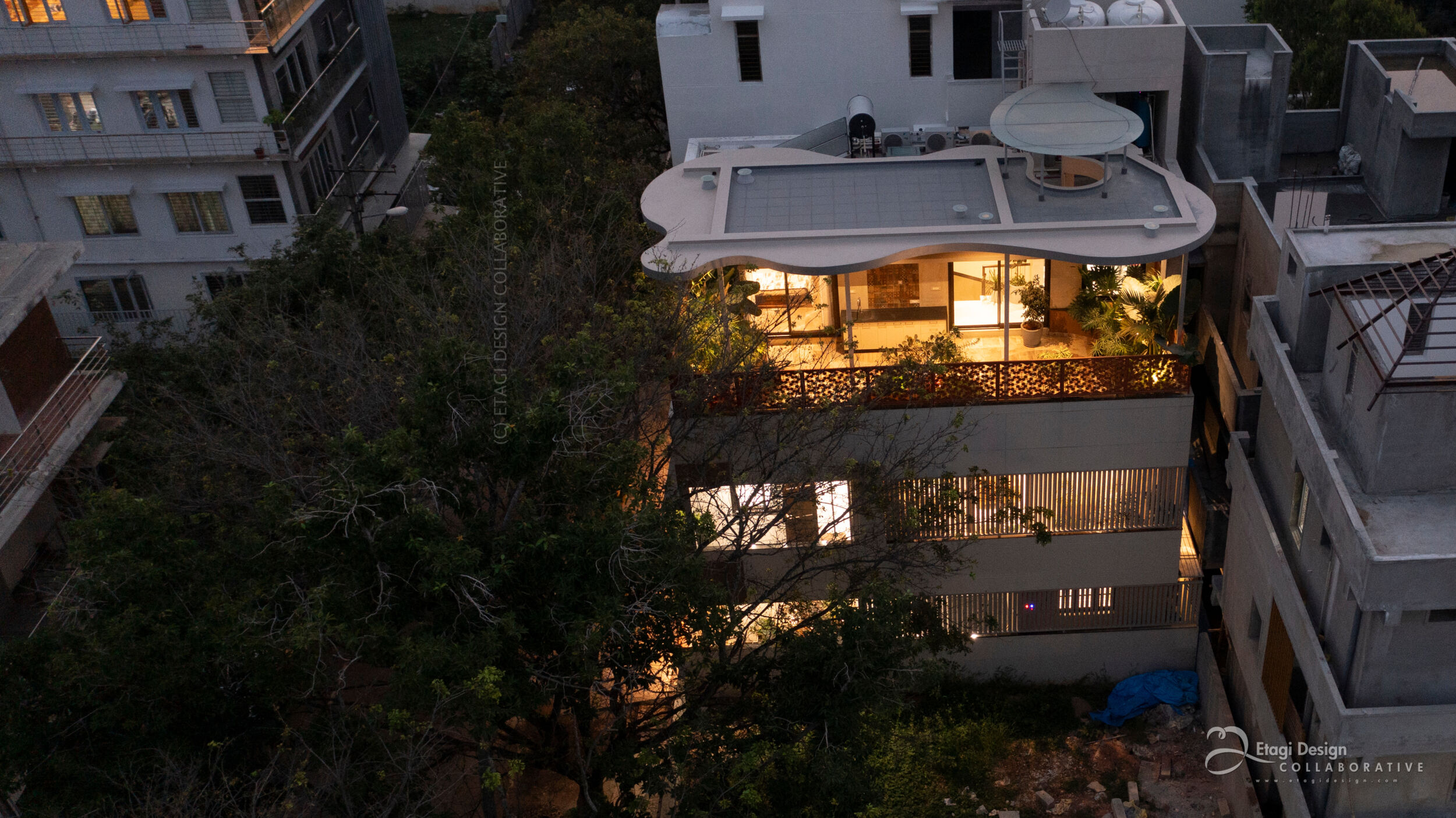Renovated after 18 years, the Besugé residence in Jakkur, North Bangalore, showcases a harmonious blend of aesthetics and functionality. Spanning 3500 sq. ft., this 30' x 40' plot underwent extensive remodeling, surpassing the occupants initial expectations. "Besugé" meaning "bonding" in Kannada, symbolizes the strong connection between the occupants, architects, and contractors, reflecting a successful collaboration in achieving architectural excellence. Etagi Design Collaborative cherishes the unique project and hopes for continued bonding in future endeavors.