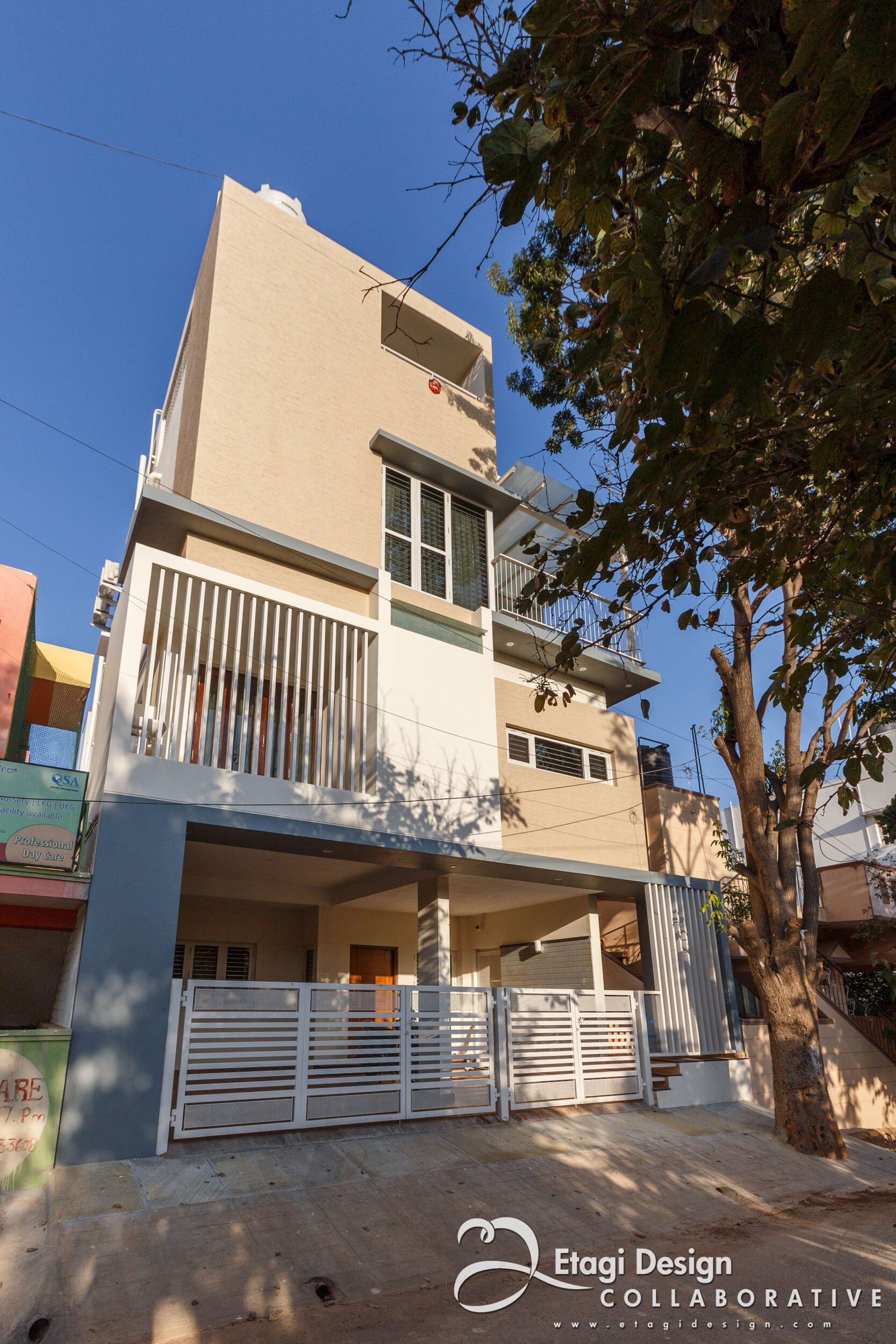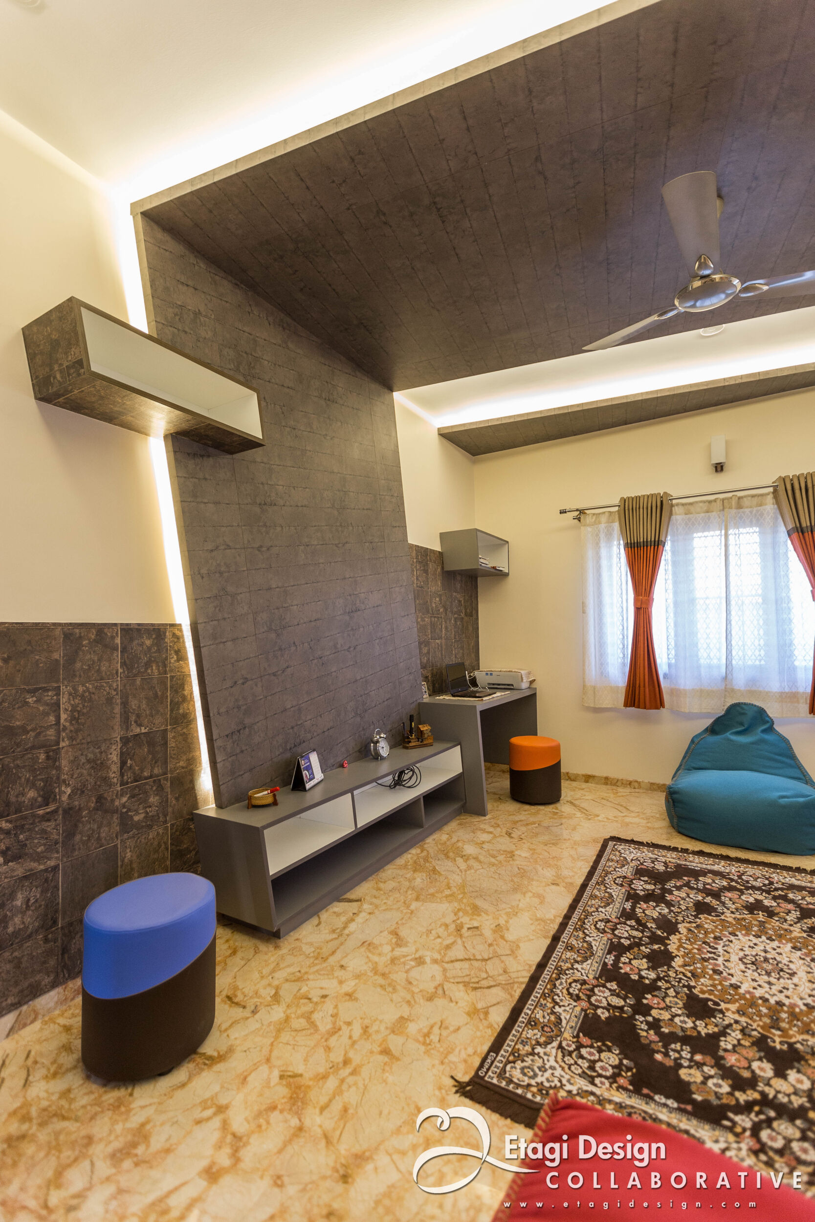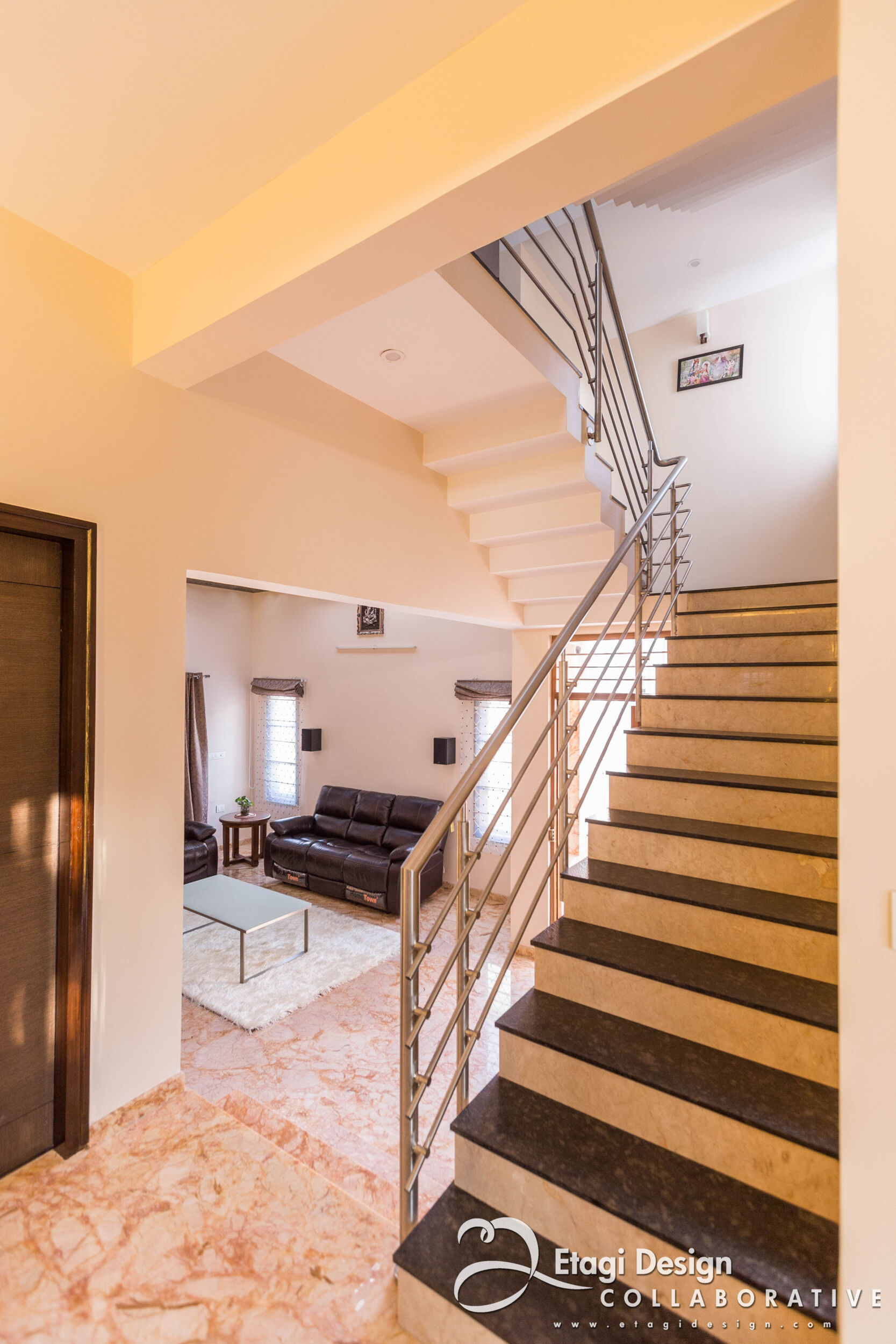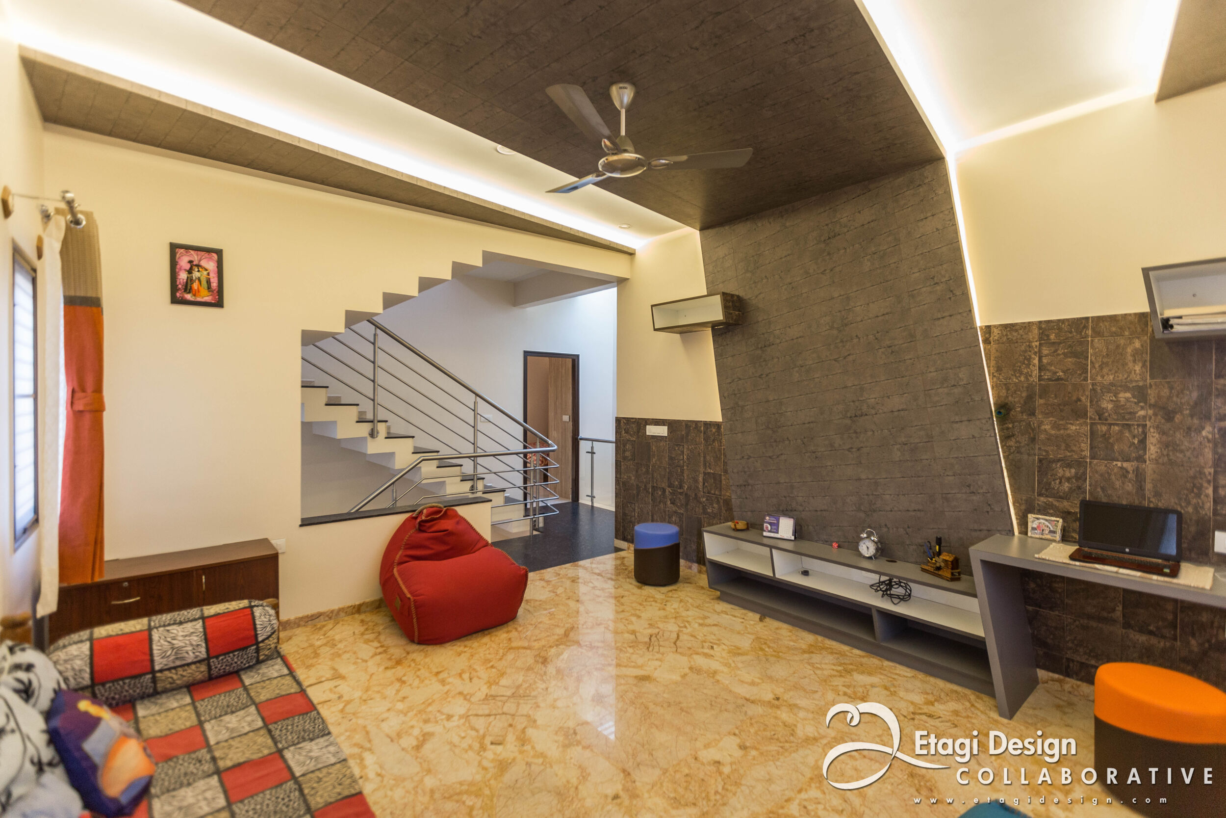 In the northern suburb of Canara Bank Layout, Sahakaranagar, Bangalore, discover the inviting interiors of a 3 BHK duplex residence with a family room. This thoughtfully designed space seamlessly combines functionality and aesthetics, creating a comfortable and stylish urban haven.