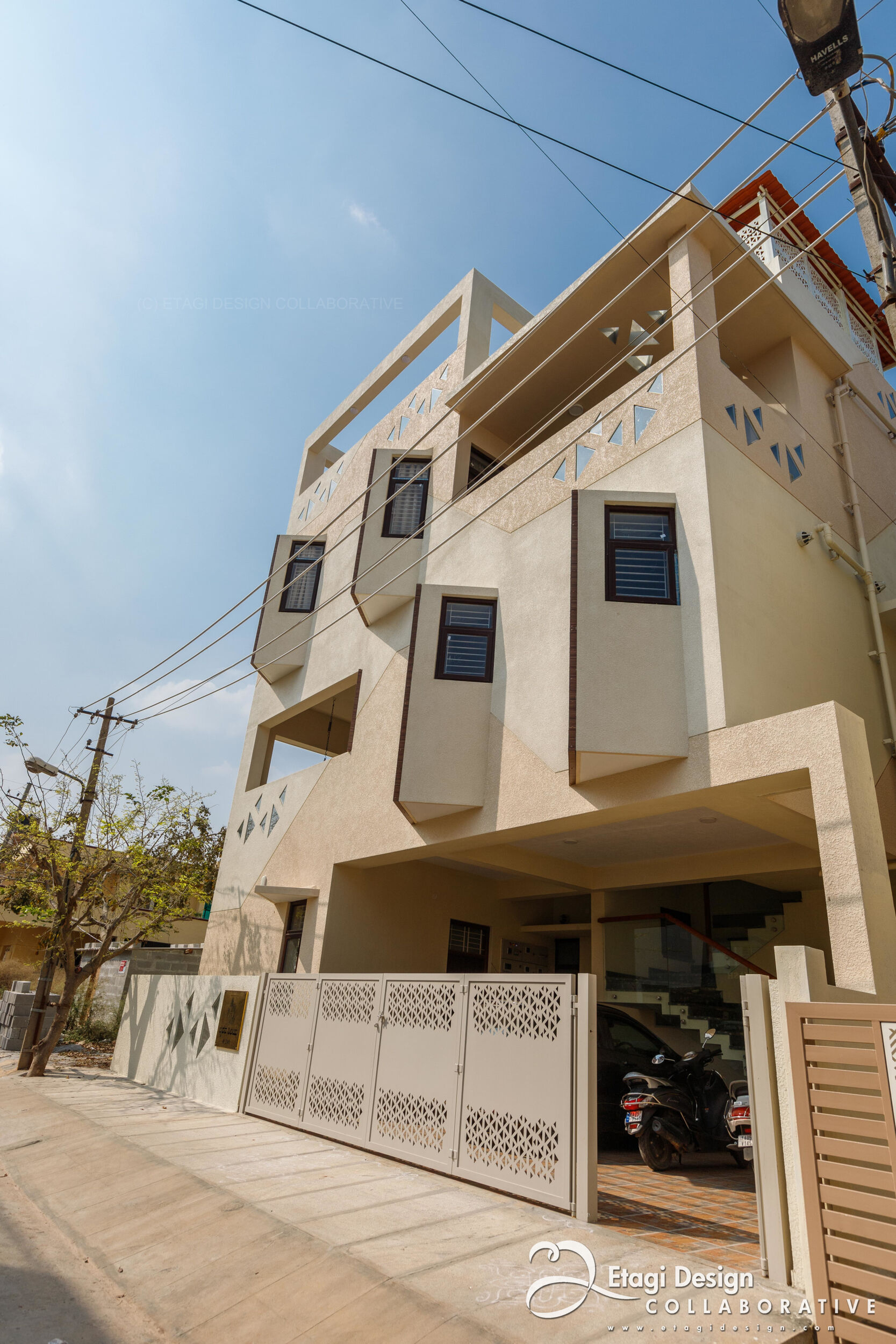 In the heart of South Bangalore's Dwaraka Nagara, Channasandra, a 5500 sq. ft., 4 BHK duplex residence graces a 12M X 18M (40' x 60') south-facing plot. With terrace gardens and an internal water court, this meticulously designed project offers a harmonious blend of nature and modern living. Adding versatility, the ground floor features a 3 BHK rental unit and a small office, enhancing the functionality and appeal of this unique residence.