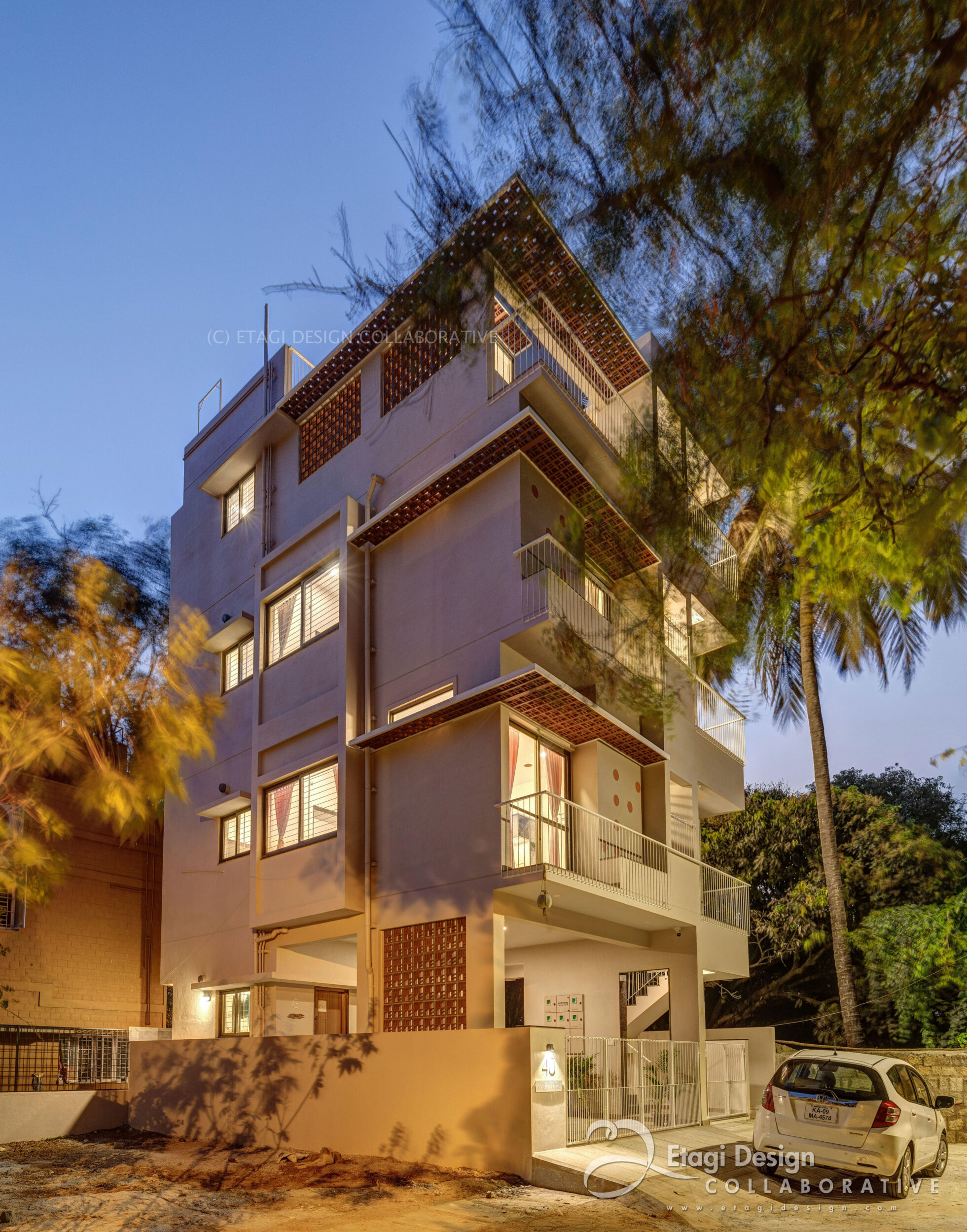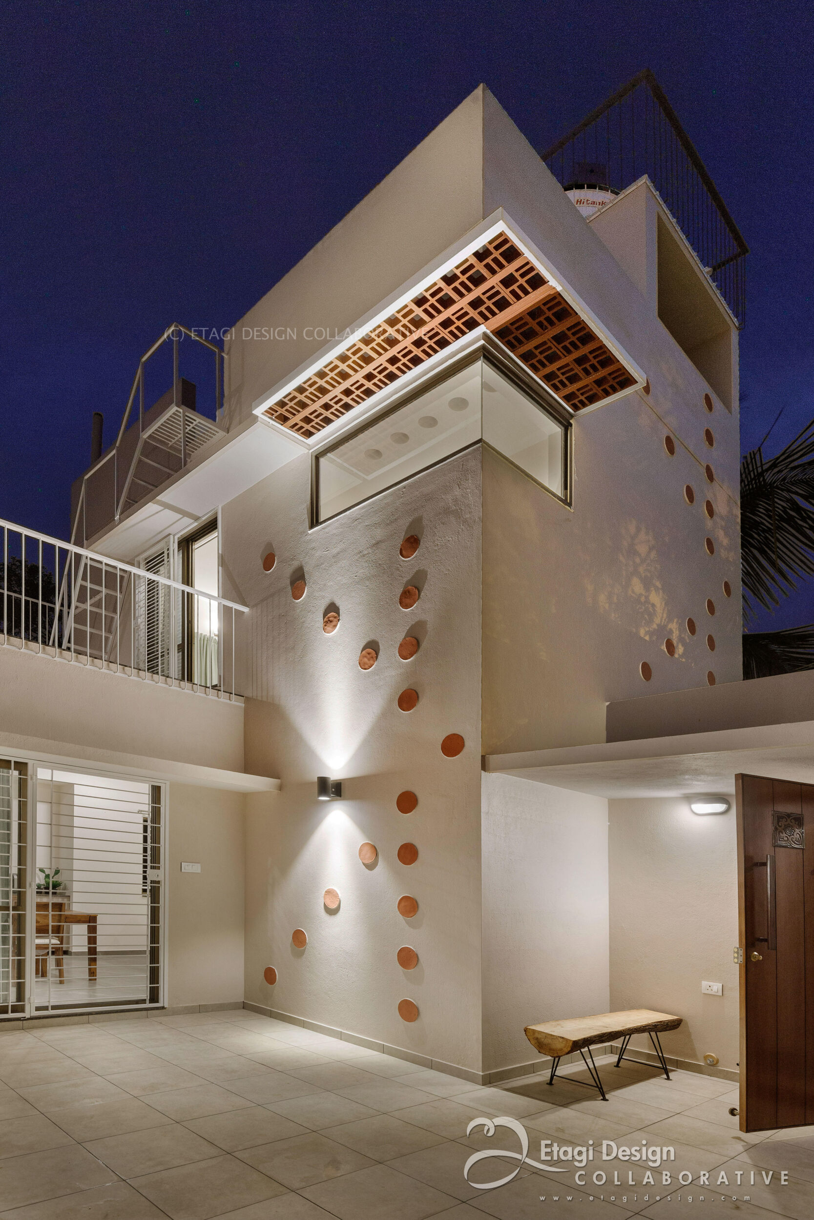 This thoughtfully designed "Kalpataru" residence maximizes space on a modest 7.9M x 10.0M (26' X 33') plot, showcasing efficient living in the vibrant northern suburb of Bangalore. With a focus on functionality and aesthetics, it exemplifies smart urban living in a smaller footprint.