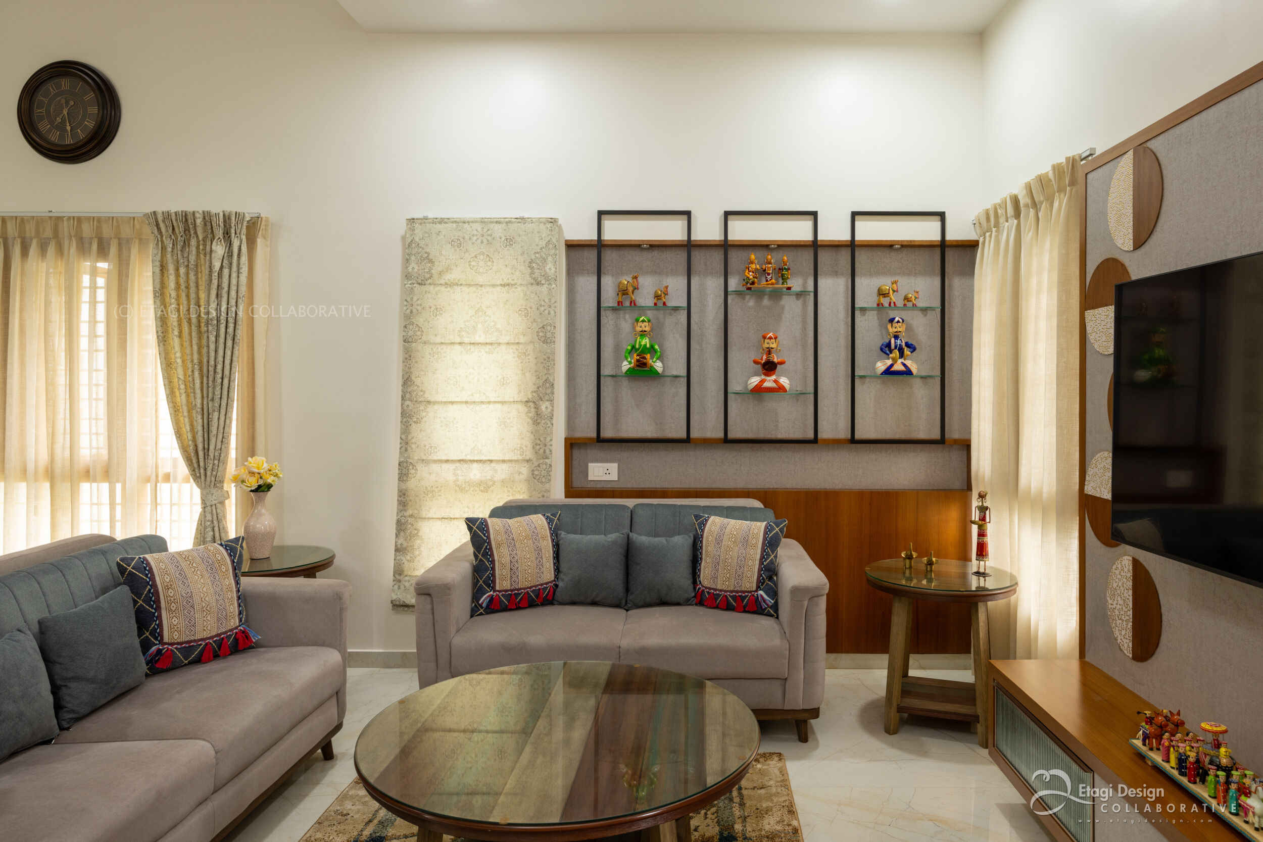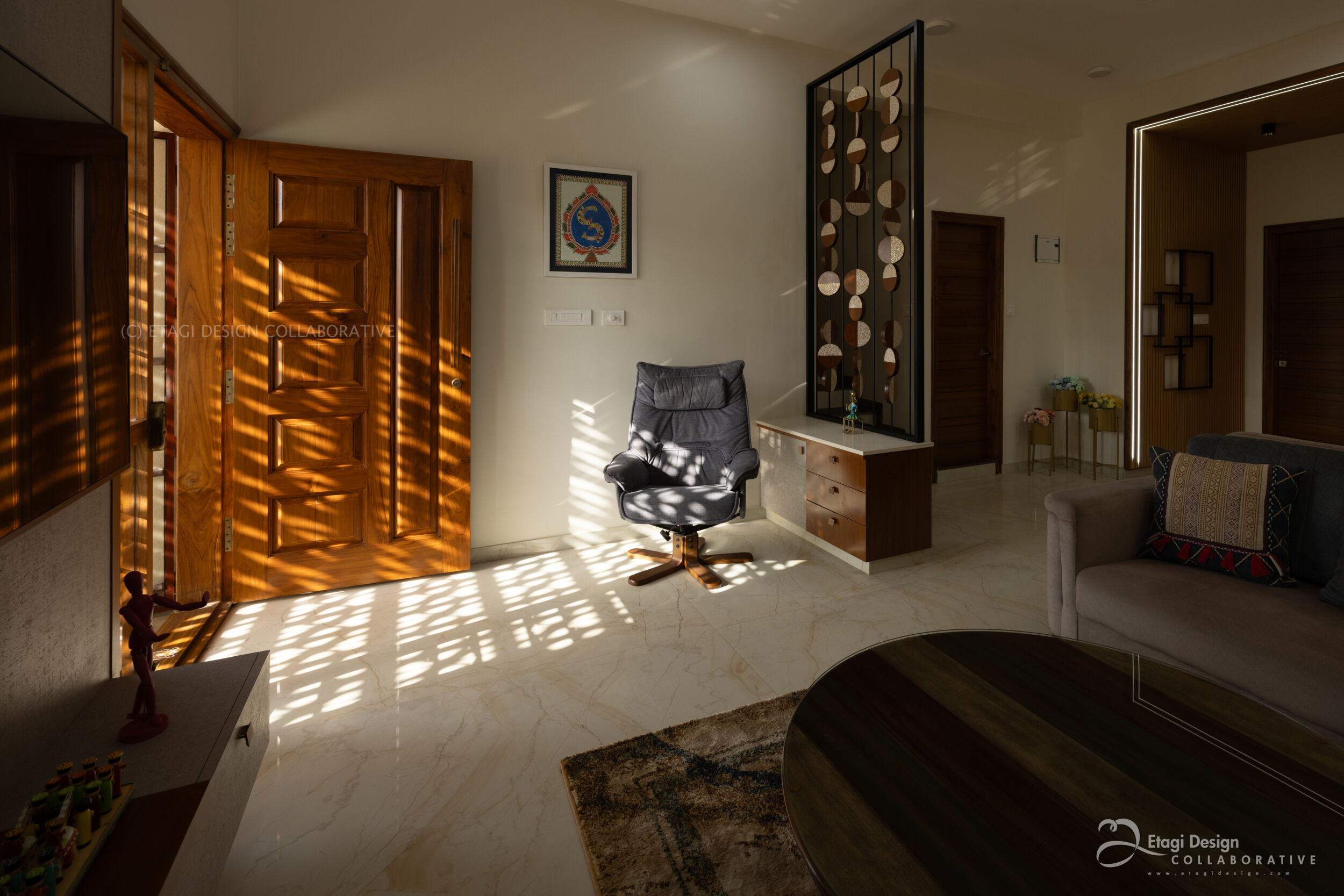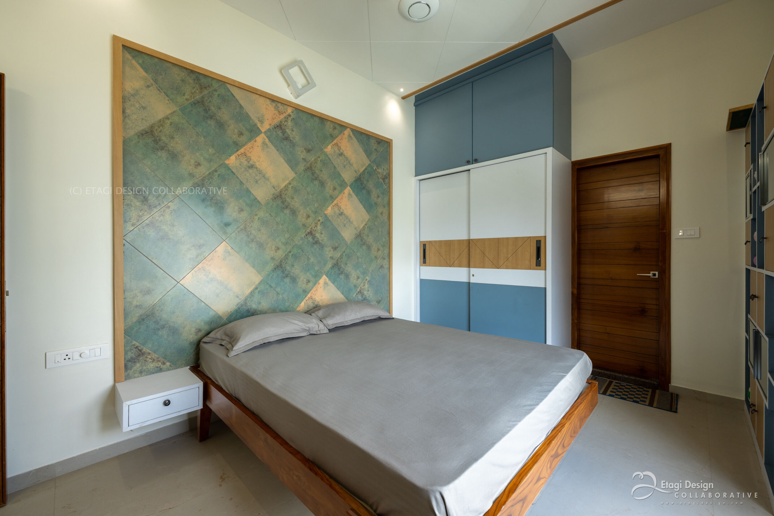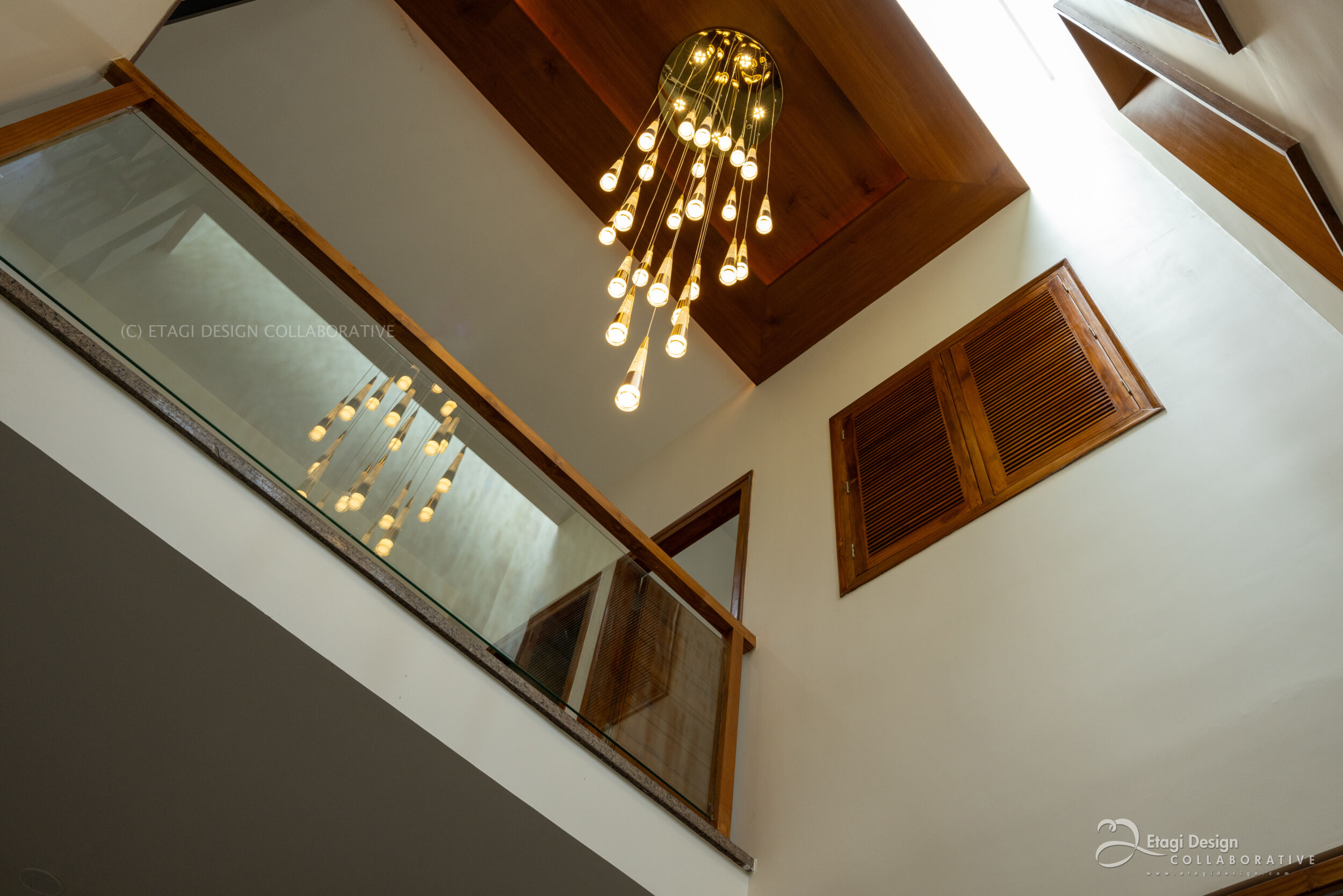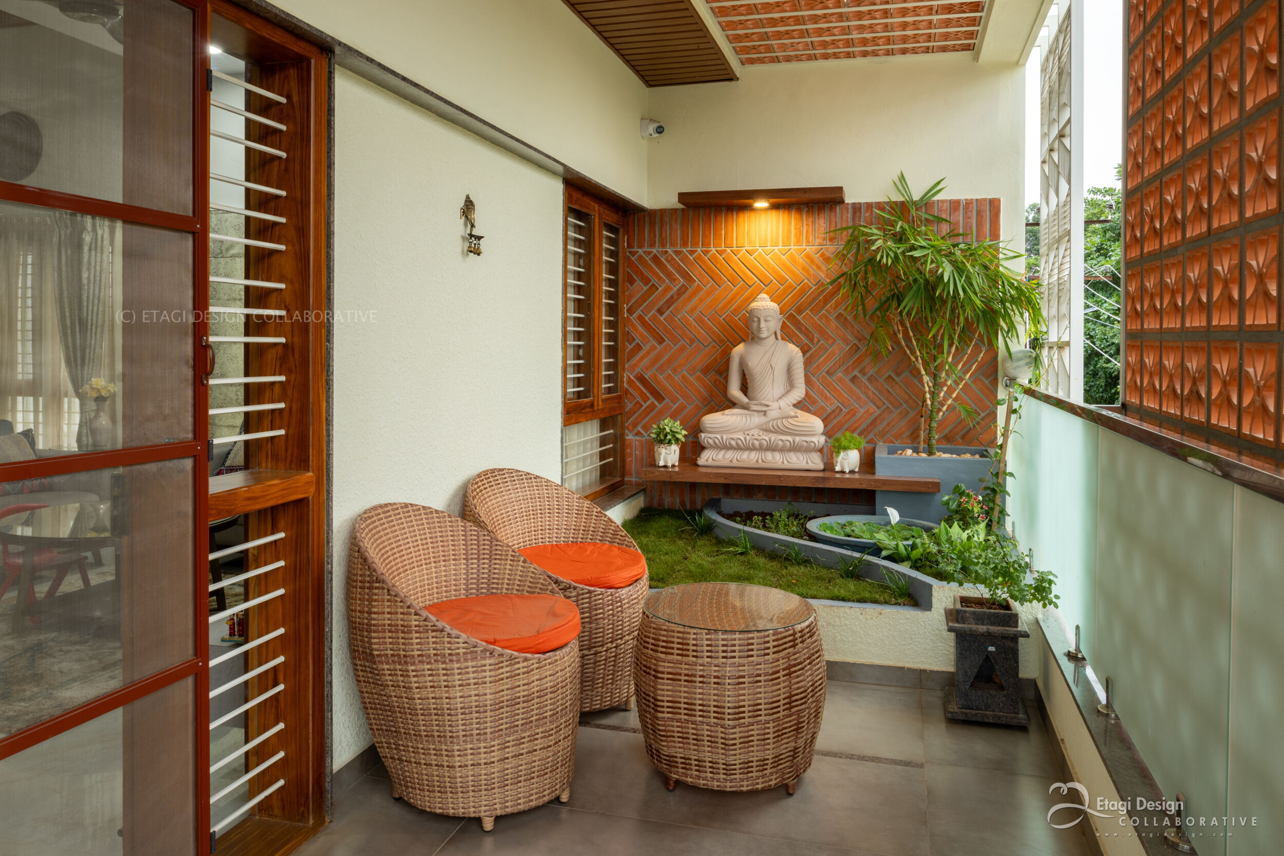 "Madhura," Soumya Murthy and Abhinav Goel's residence in Kanakashree Layout, Bangalore, comprises a 2 BHK rental unit on the ground floor and a 3 BHK duplex for self-occupancy on the upper floors .With a blend of form, color, and materials, the 5000 square foot home is designed to improve family communication. This east-facing 30' x 50' plot has a terrace garden and a contrasting roof, which give it a distinctive touch.