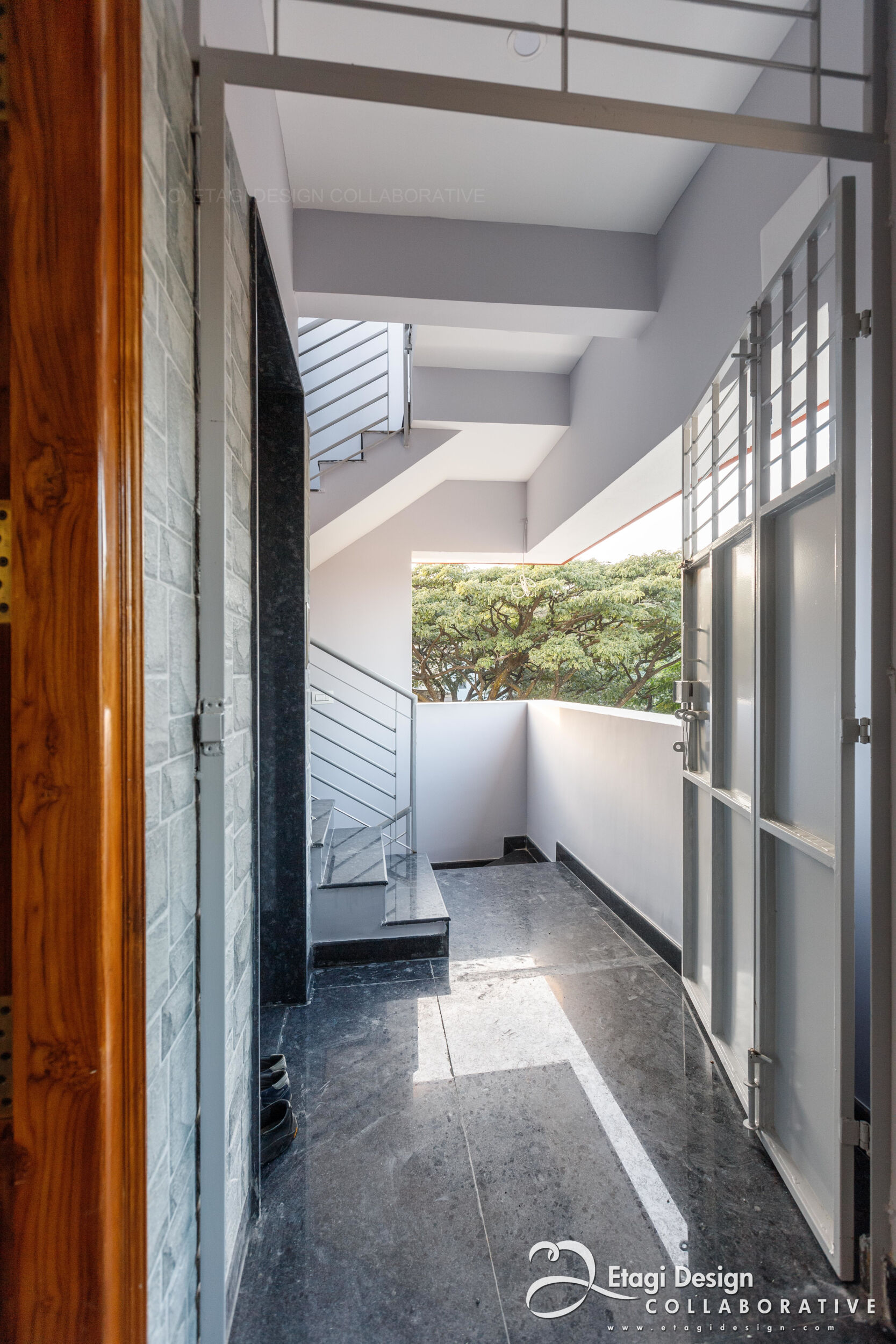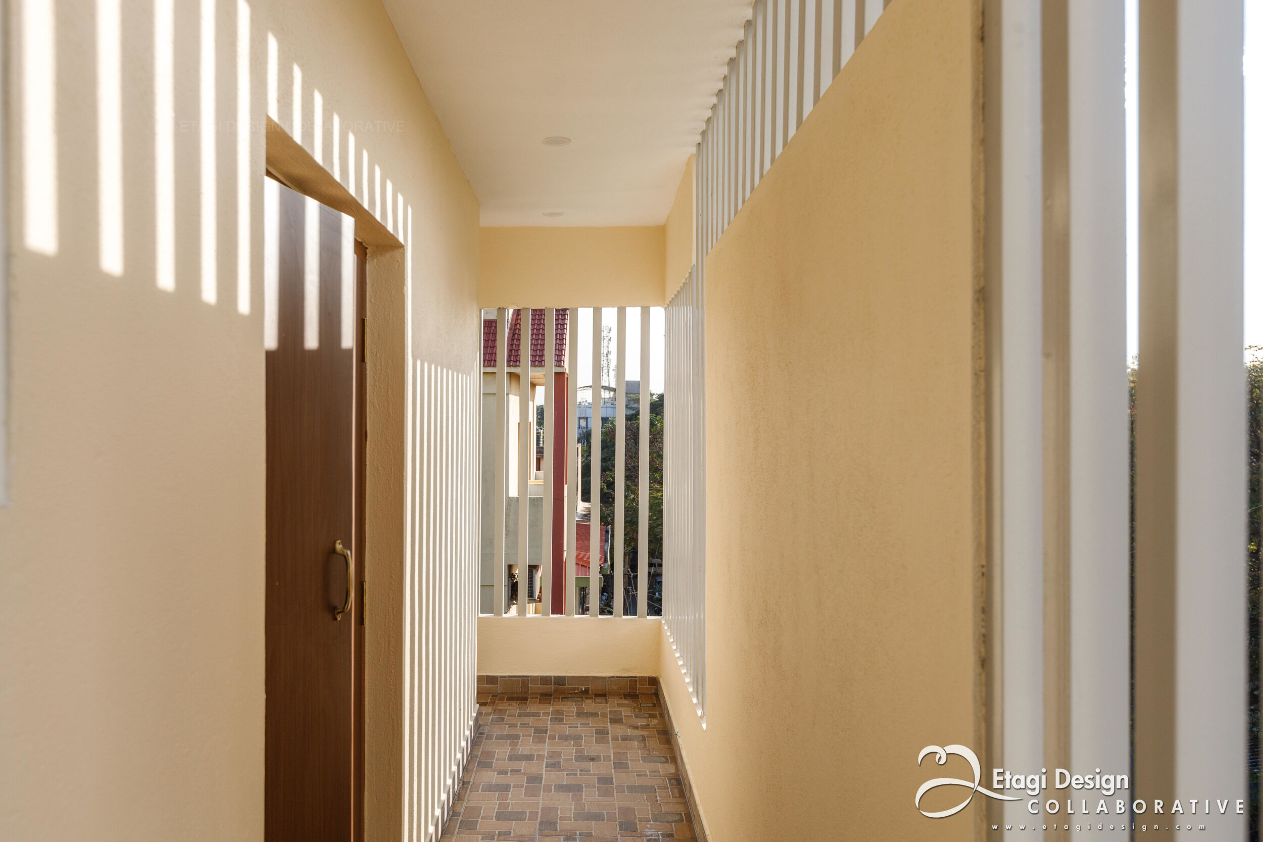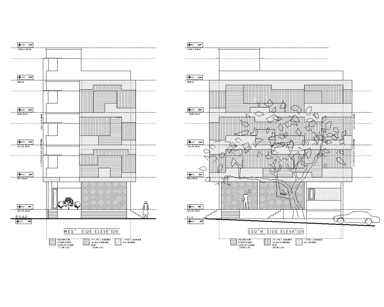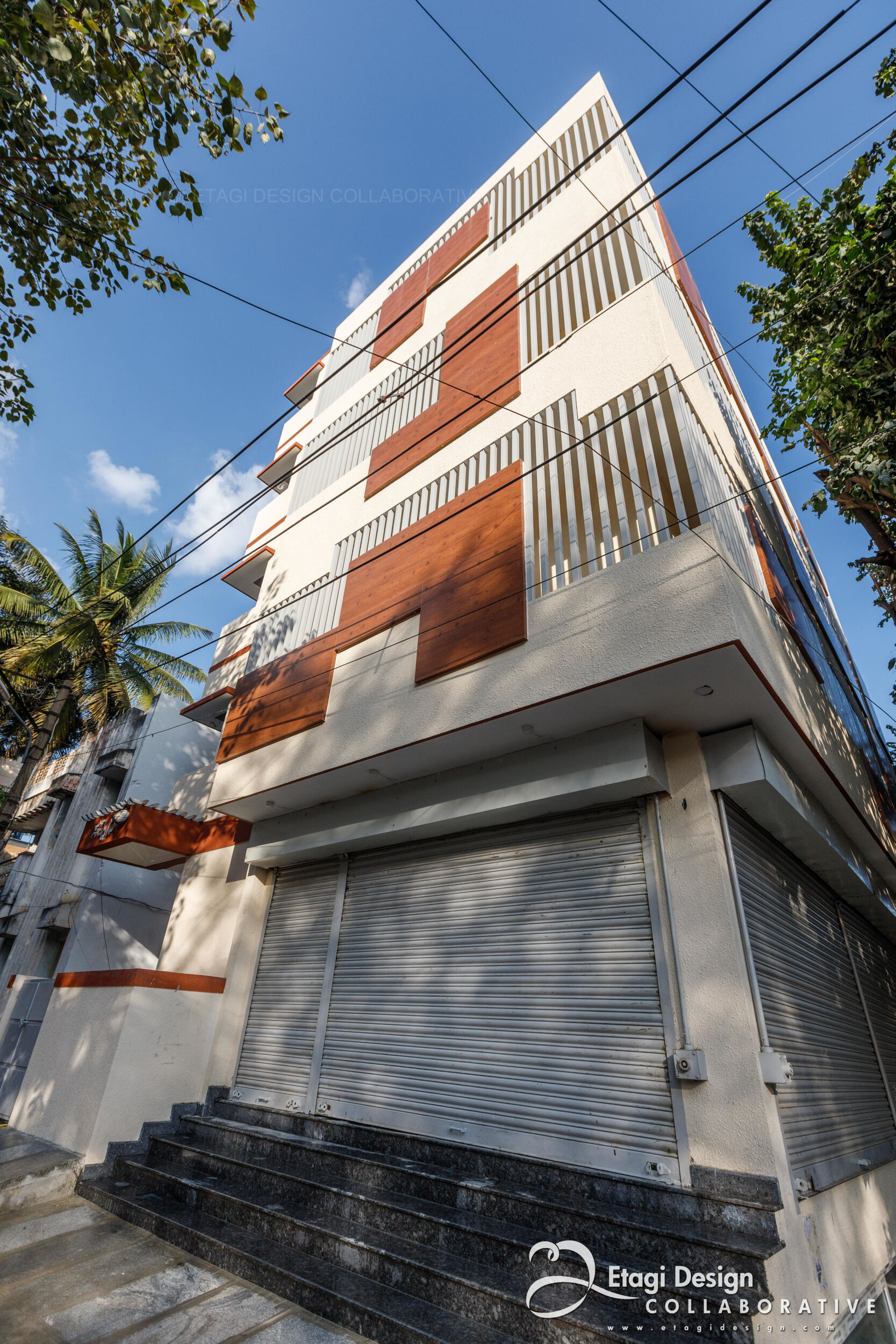 The Mixed-Use Multi-Dwelling Unit in Subramanya Nagar, Bangalore, stands on a 9M × 13M (30' × 45') corner plot, embracing a strategic blend of commercial and residential spaces. Situated in the evolving North Western part of the city, once a low-income housing suburb, the project adapts to the changing landscape, transforming former industrial plots into a modern investment. With a basement for parking and ground floor for commercial purposes, the upper floors feature two-bedroom units designed for flexible use as homes or offices, ensuring continuous occupancy and income generation. The building, located just off Dr. Rajkumar Road, incorporates a perforated skin wall, crafted with lath plaster, fabricated metal grills, and exterior-grade laminates, providing both functional and aesthetic benefits, shielding the structure from the elements while creating an intriguing elevation element. The addition of a buffer space between the main building and the skin wall, adorned with plants, introduces a visually refreshing element in the midst of the bustling urban environment.