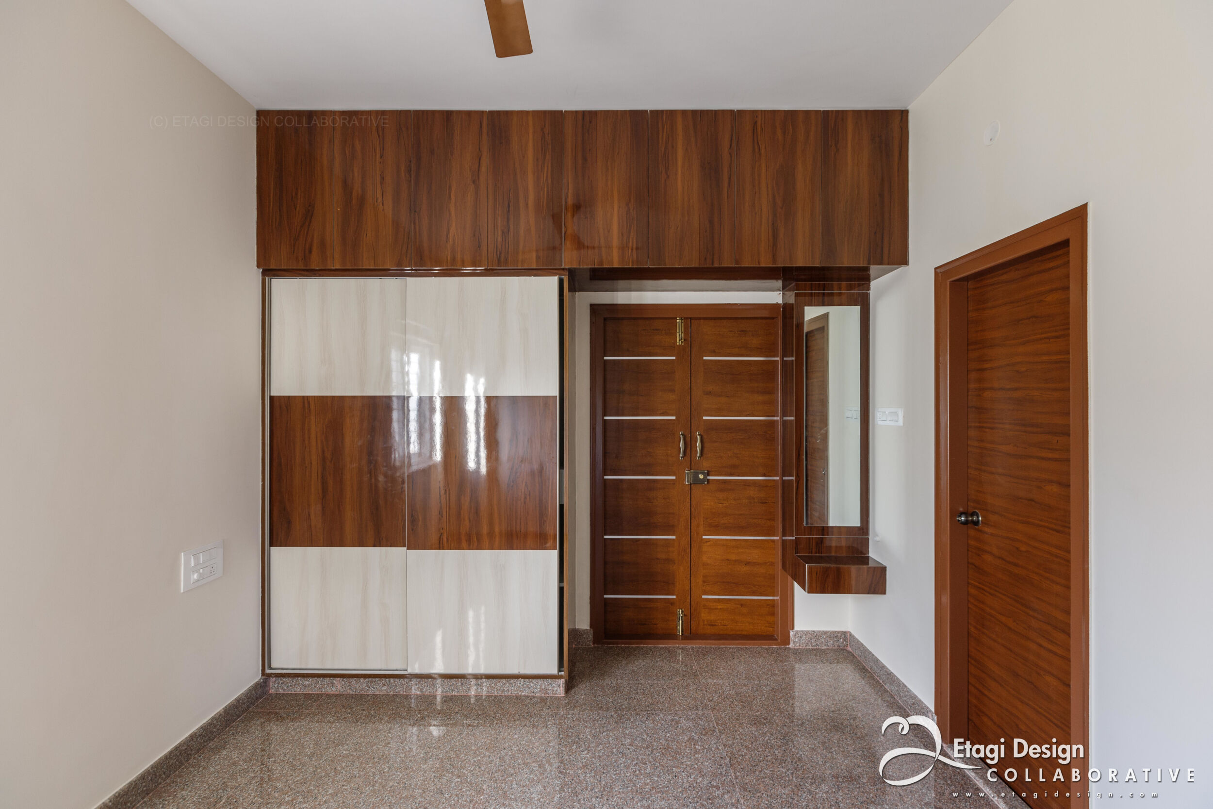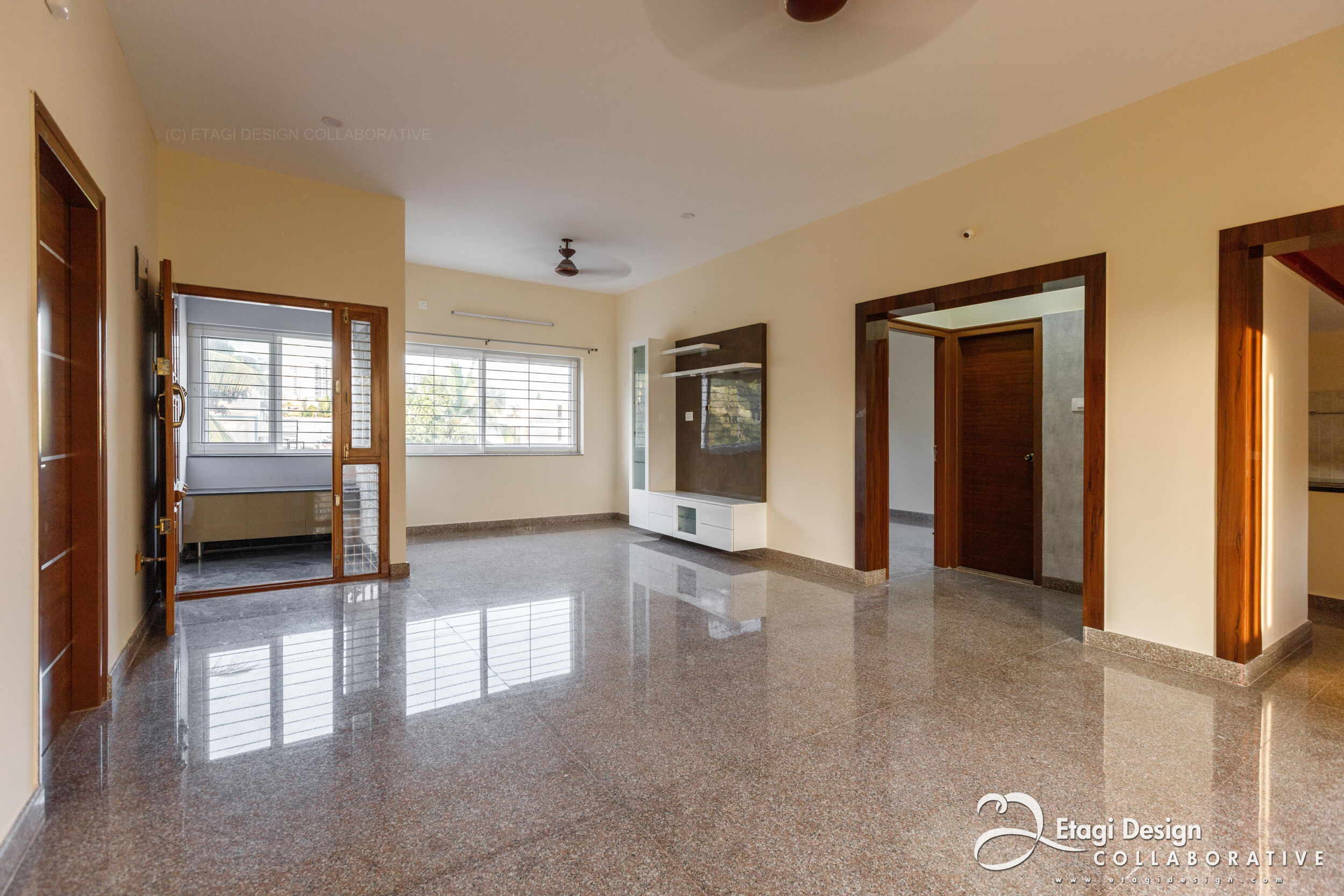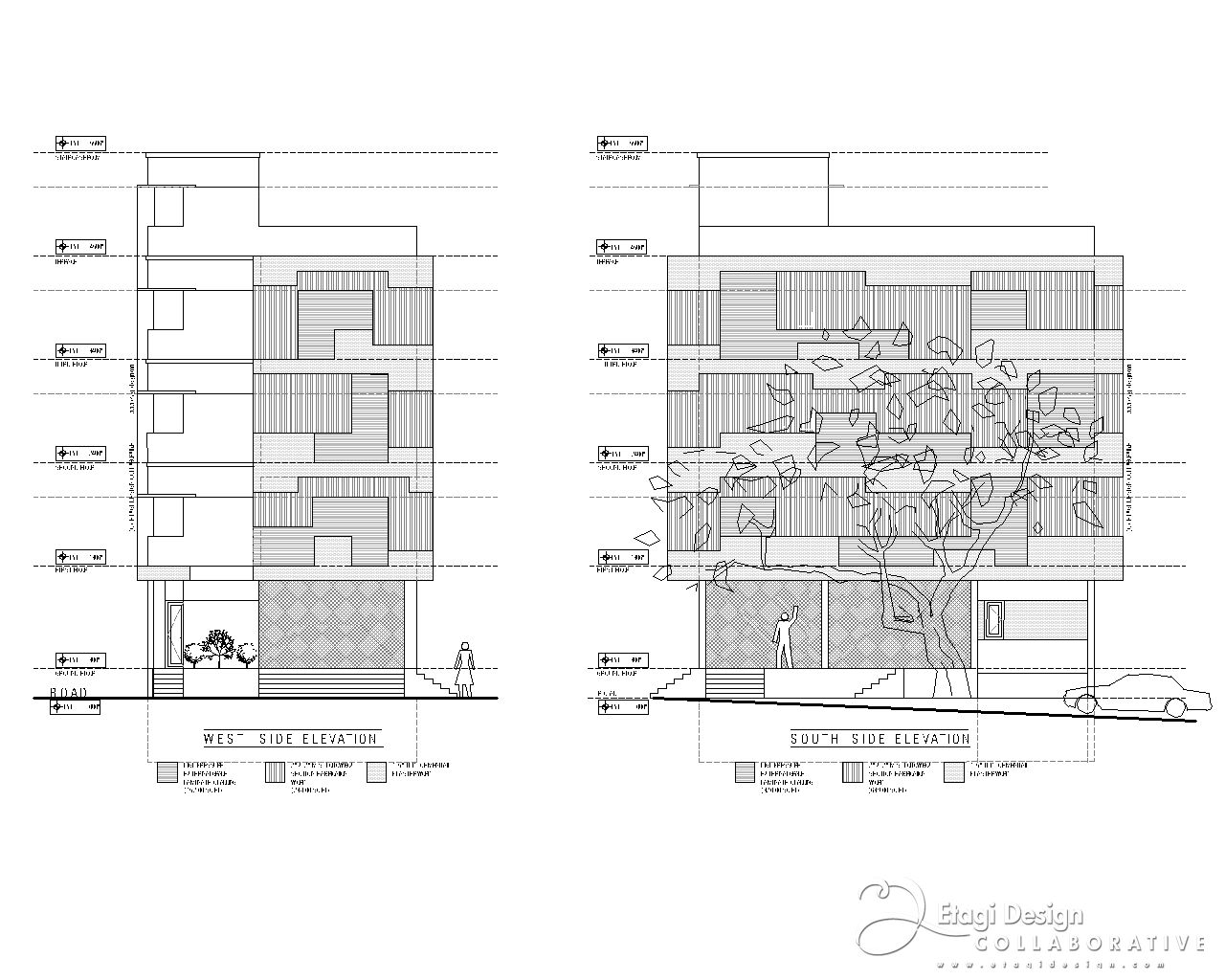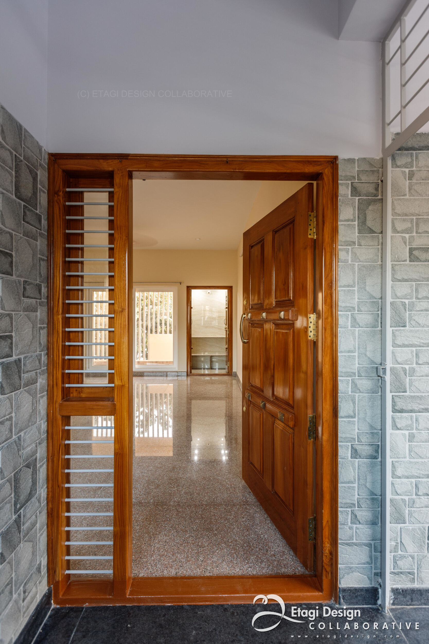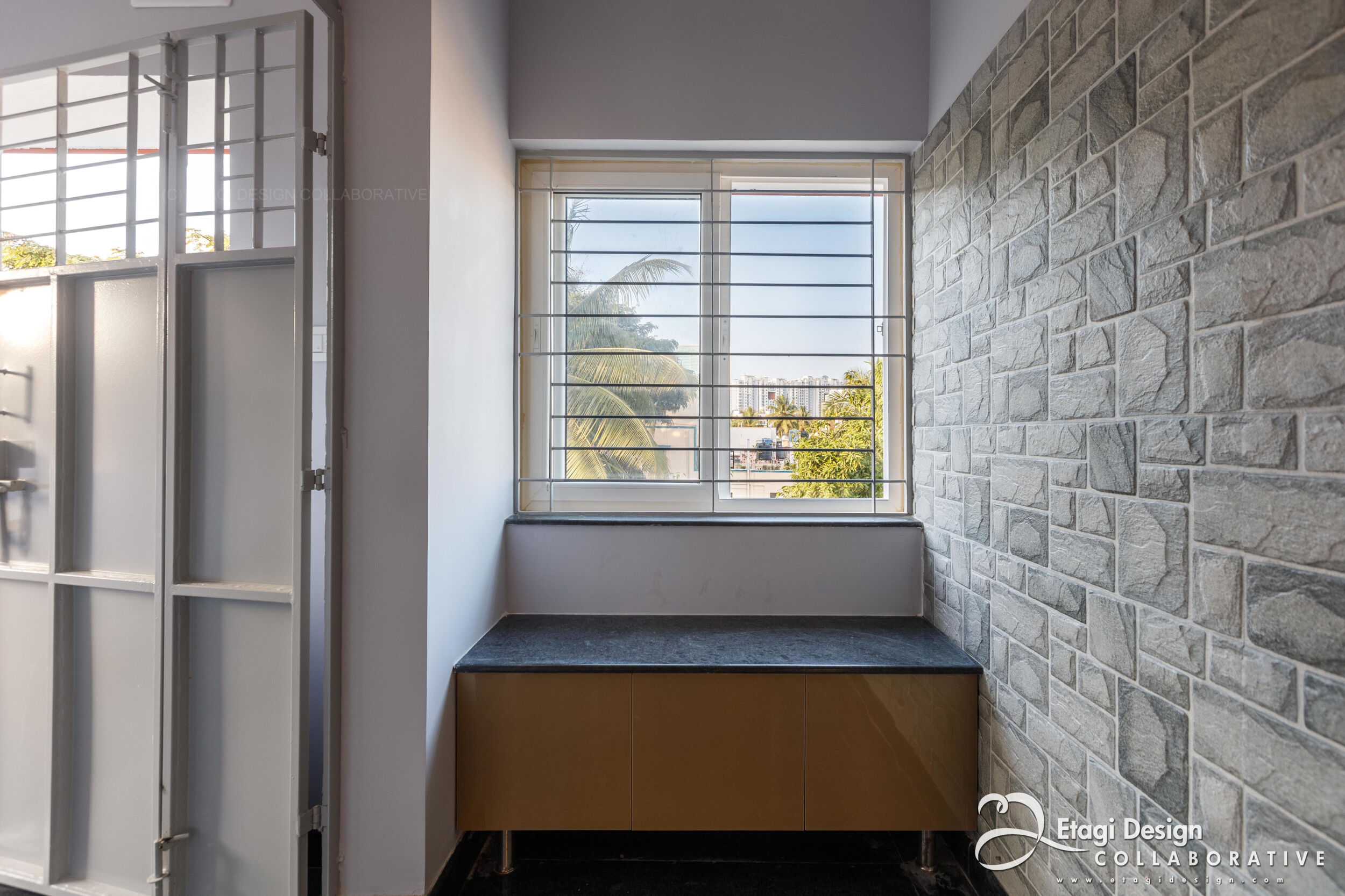The Mixed-Use Multi-Dwelling Unit in Subramanya Nagar, Bangalore, stands on a 9M × 13M (30' × 45') corner plot, embracing a strategic blend of commercial and residential spaces. Situated in the evolving North Western part of the city, once a low-income housing suburb, the project adapts to the changing landscape, transforming former industrial plots into a modern investment. With a basement for parking and ground floor for commercial purposes, the upper floors feature two-bedroom units designed for flexible use as homes or offices, ensuring continuous occupancy and income generation. The building, located just off Dr. Rajkumar Road, incorporates a perforated skin wall, crafted with lath plaster, fabricated metal grills, and exterior-grade laminates, providing both functional and aesthetic benefits, shielding the structure from the elements while creating an intriguing elevation element. The addition of a buffer space between the main building and the skin wall, adorned with plants, introduces a visually refreshing element in the midst of the bustling urban environment.