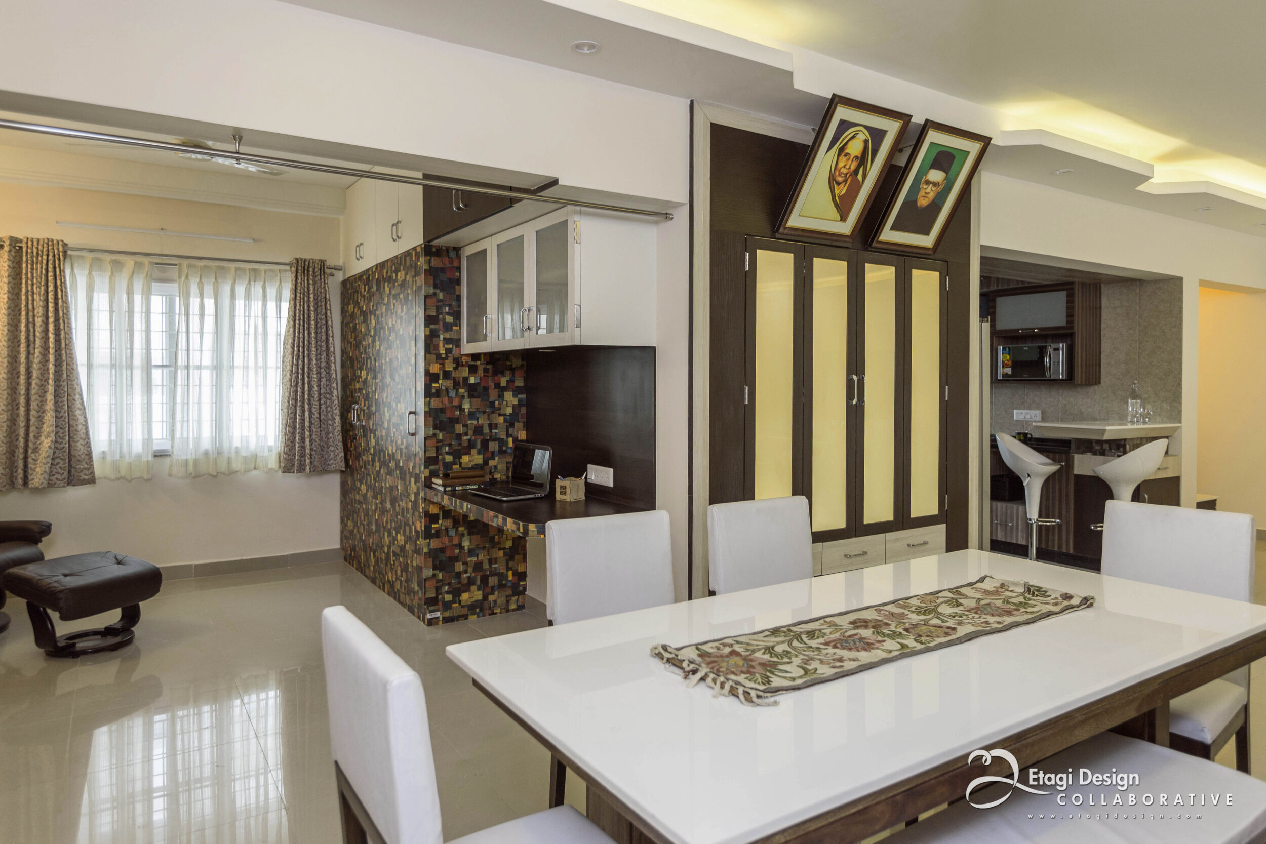 Sunil Kumar & Neelam Garg's 1350 sq.ft. apartment in Bangalore undergoes a transformative interior fit-out project by Etagi Design Collaborative. This comprehensive endeavor encompasses civil work, interior woodwork, and meticulous finishing, creating a personalized and aesthetically pleasing living space tailored to the homeowners' preferences.
